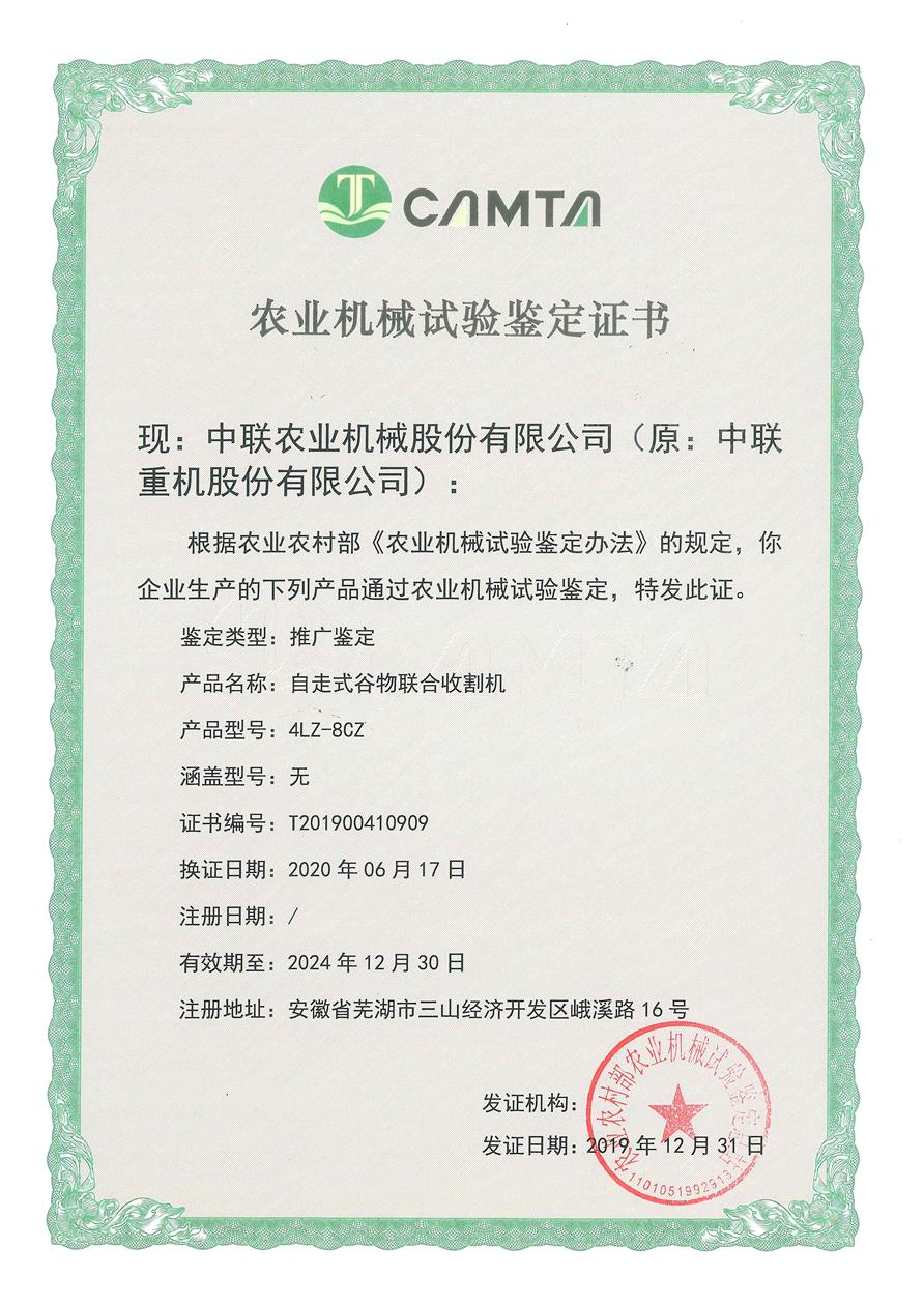 7kg/s及以上自走轮式谷物联合收割机(2021-2023)